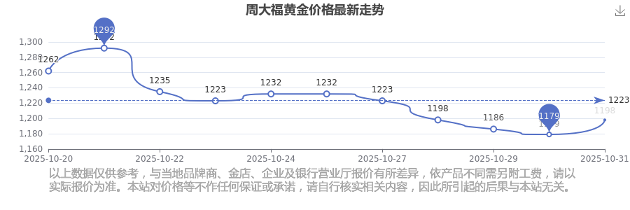 今日周大福 黄金价格最新的克重售价为1198.0元/克。