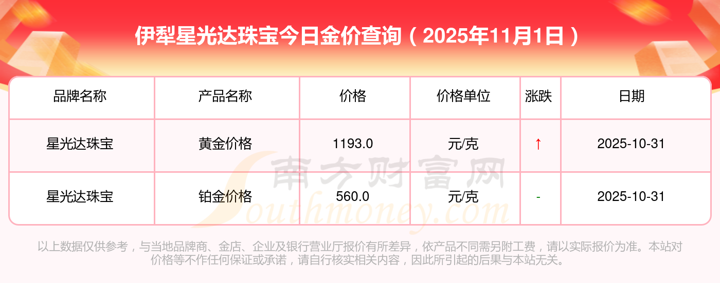 伊犁星光达珠宝金价今日价格最新_伊犁星光达珠宝黄金多少钱一克2025年11月1日,随小编来了解一下详情。
