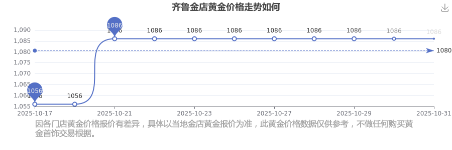 今日齐鲁金店黄金价格最新查询:1086.0元/克。