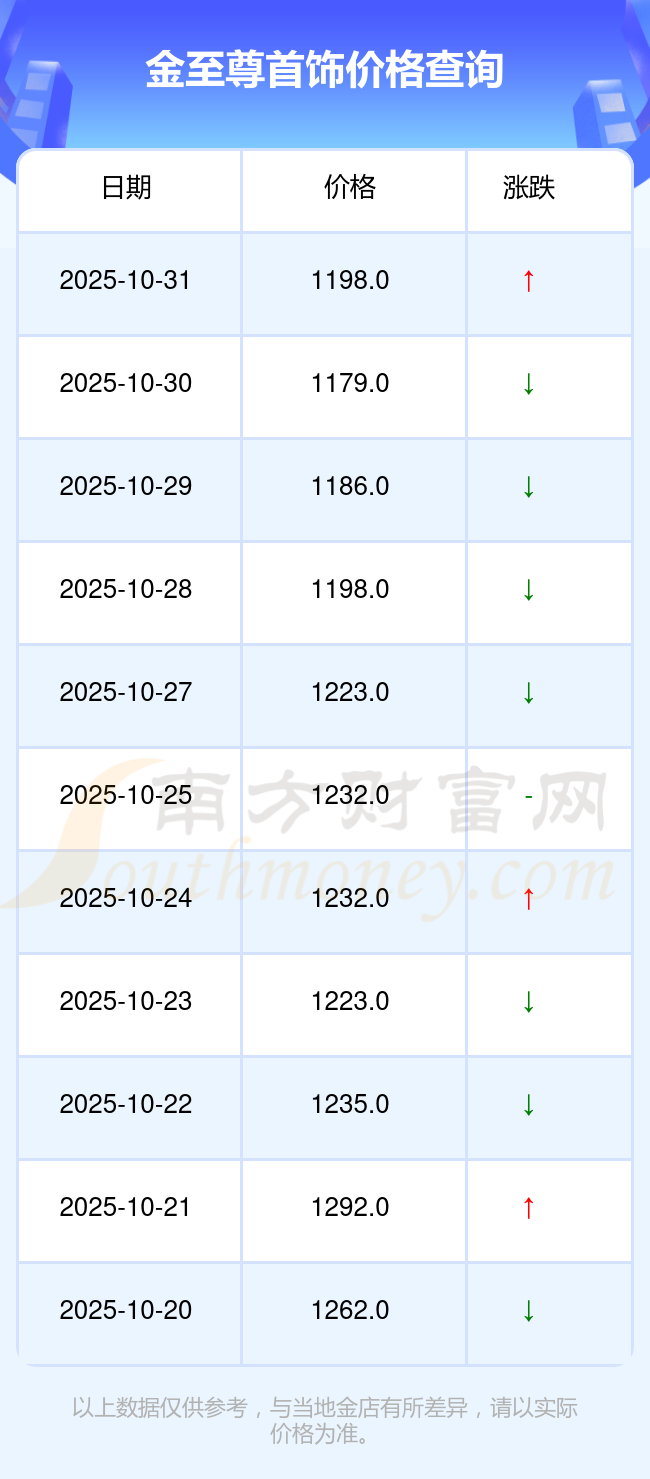 2025年11月1日金至尊首饰价格最新为1198.0元/克。
