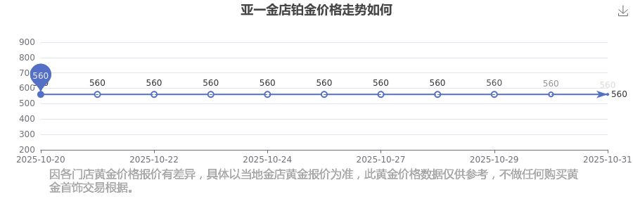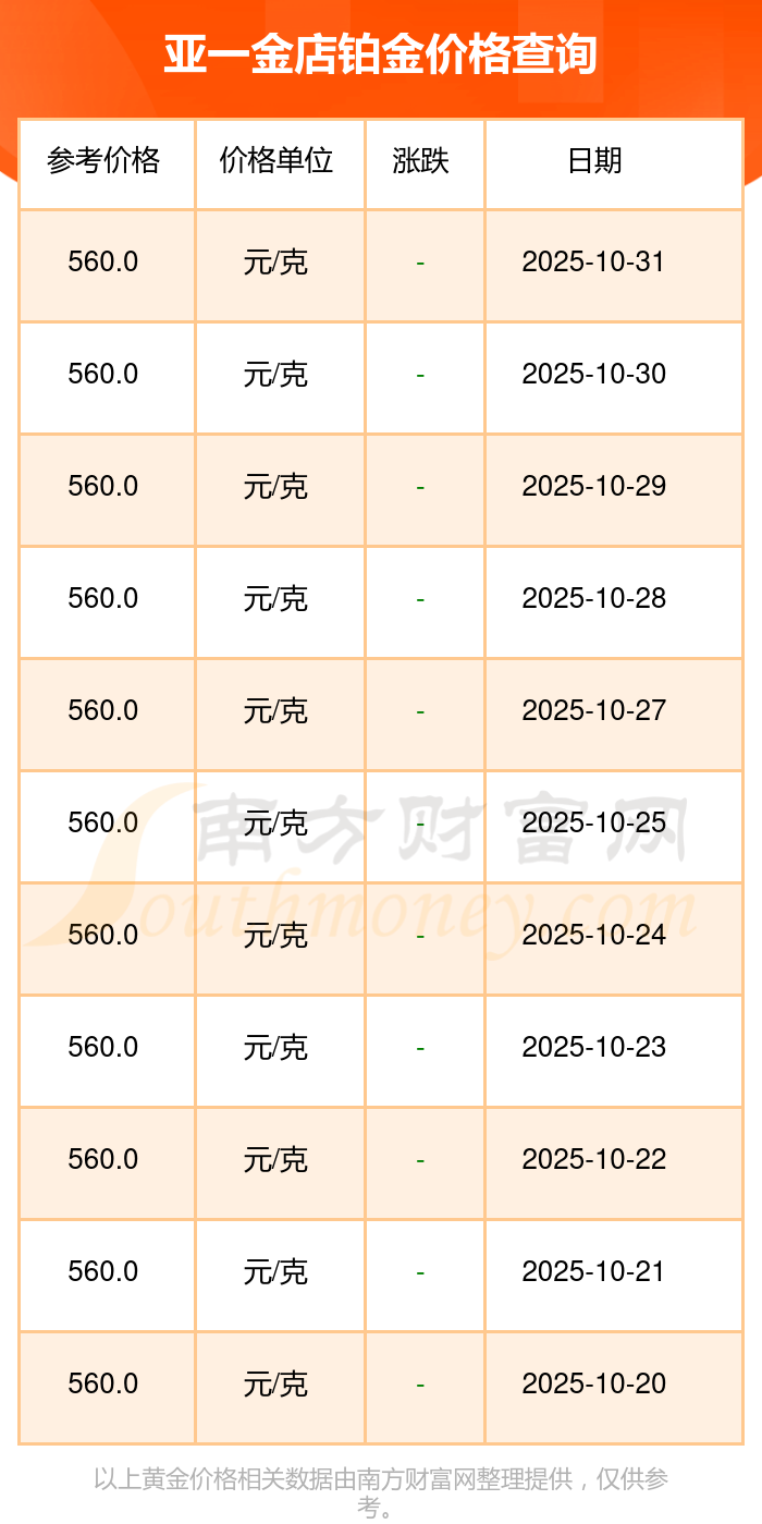据了解,今日亚一金店 铂金价格的最新价格为560.0元/克。