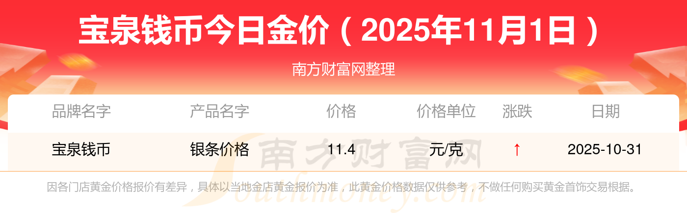 宝泉钱币现在金价多少钱一克?宝泉钱币今天银条价格多少一克?最新宝泉钱币查询,2025年11月1日宝泉钱币银条价格现在每克多少钱?最新宝泉钱币银条价格报价公布,一起来看看吧!