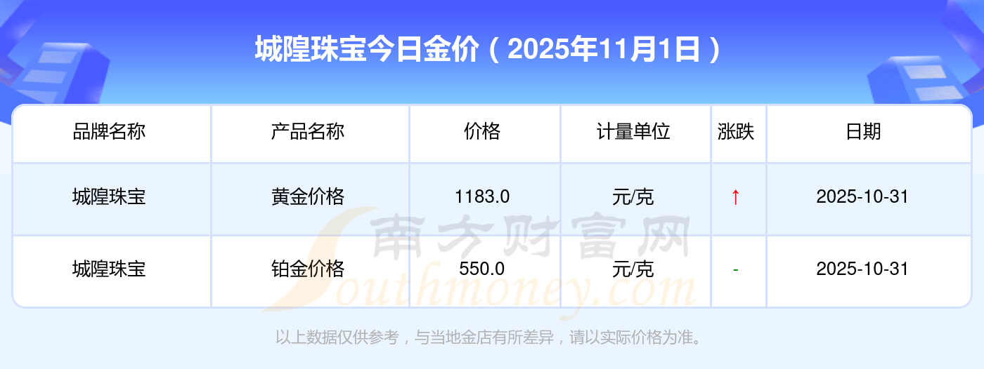 城隍珠宝今日金价查询