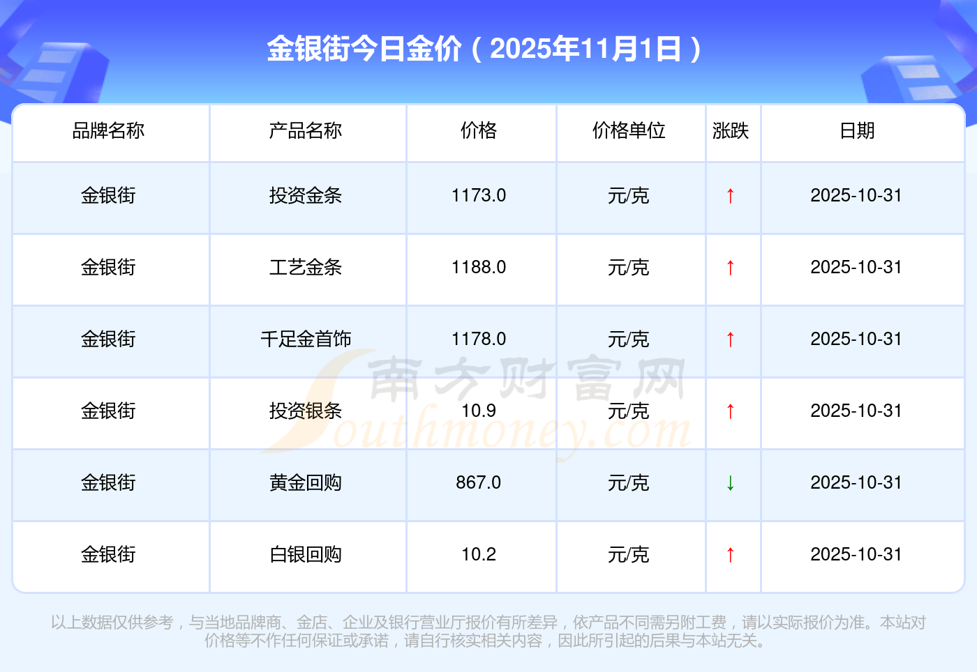 金银街金价今日价格: