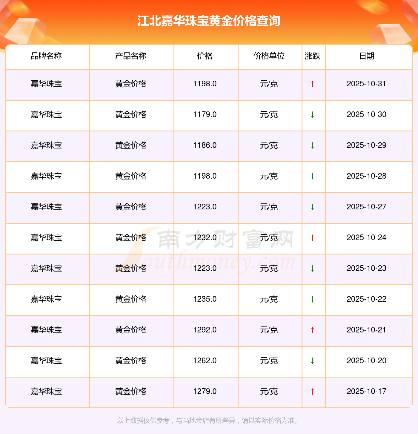 今天是2025年11月1日,周大福、周大福、周大福、周大福、周大福、周大福、周大福、老凤祥、老凤祥、老凤祥、周六福等各大金店品牌黄金价格最新价格如下:周大福1198.0元/克、周大福650.0元/克、周大福1198.0元/克、周大福44660.0、周大福18640.0、周大福40080.0、周大福1058.0元/克、老凤祥1200.0元/克、老凤祥560.0元/克、老凤祥1200.0元/克、周六福1135.0元/克。