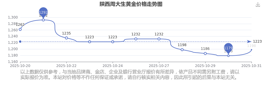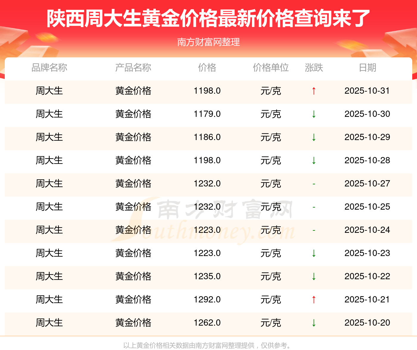 1198.0元/克,这是陕西周大生于 2025年11月1日所定的黄金价格。