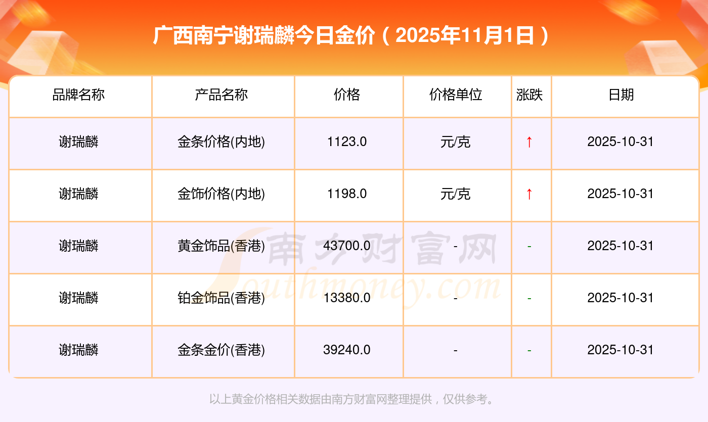 广西南宁谢瑞麟目前金价,一克的标价是多少?