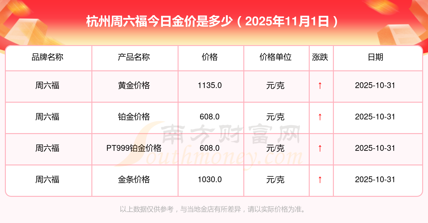 以上数据仅供参考,与当地金店有所差异,请以实际价格为准。