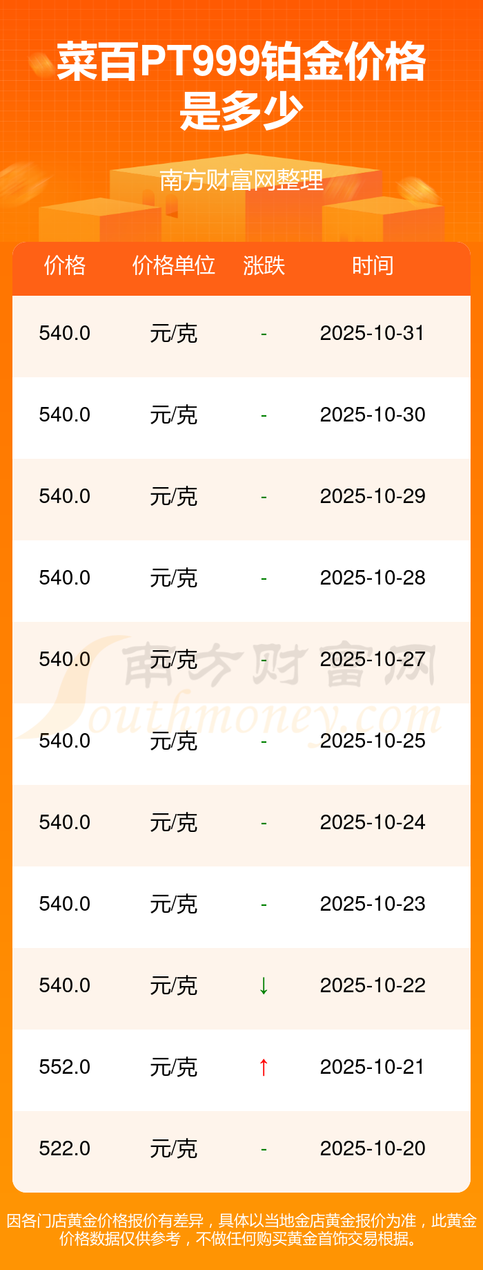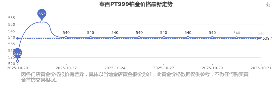 540.0元/克的价格,是菜百今日 PT999铂金的最新行情。