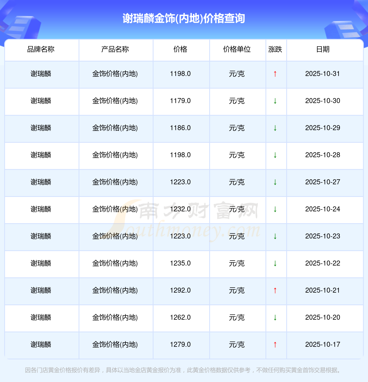 1198.0元/克的价格,是谢瑞麟今日 金饰价格(内地)的最新行情。
