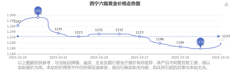 今日西宁六福黄金价格最新为:1198.0元/克。