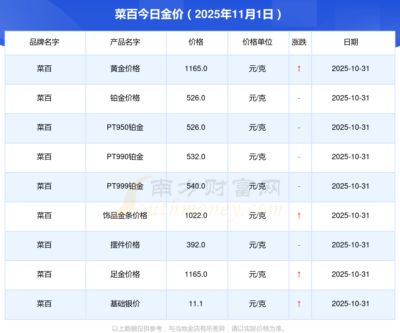 菜百今日金价查询