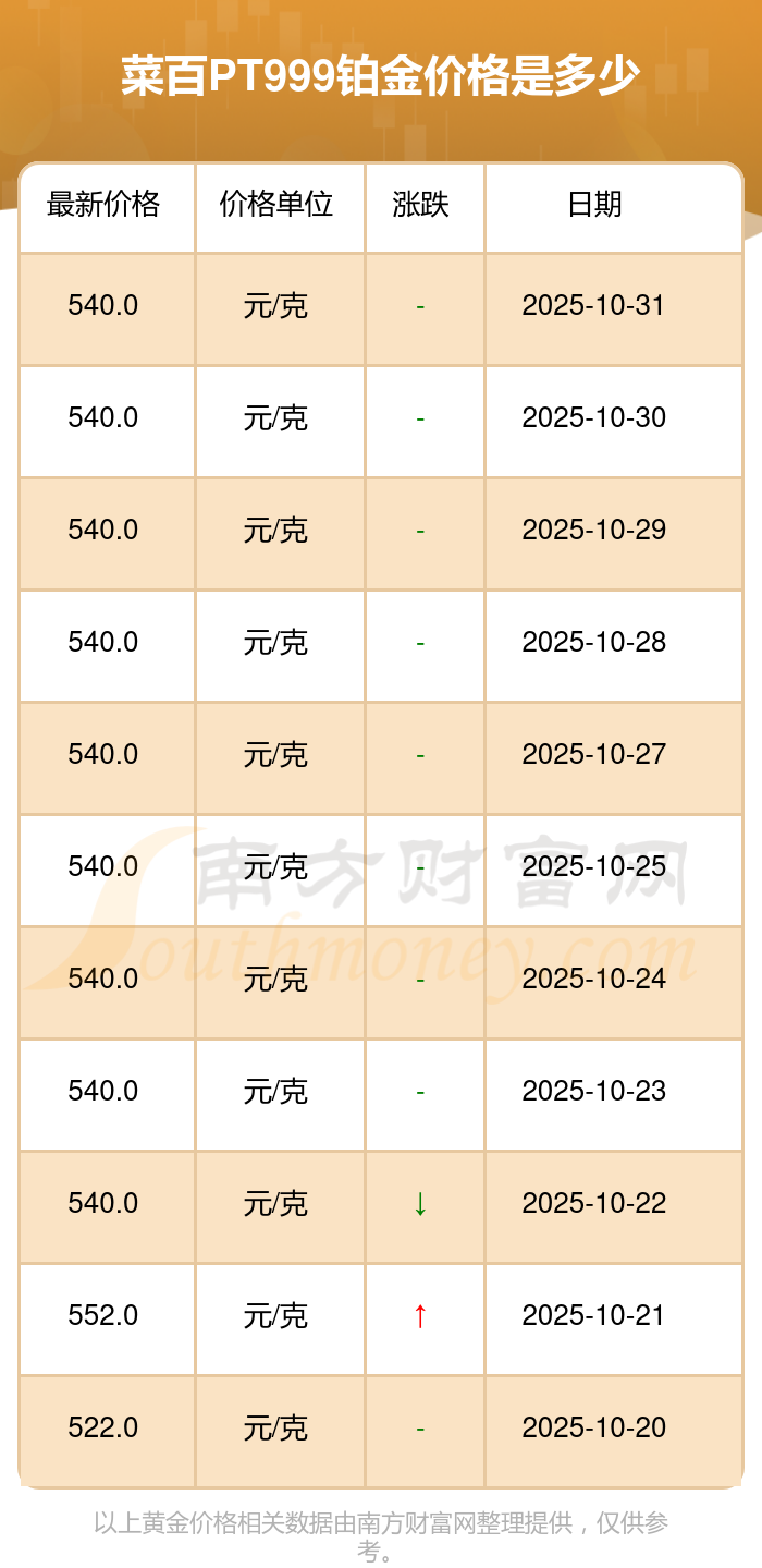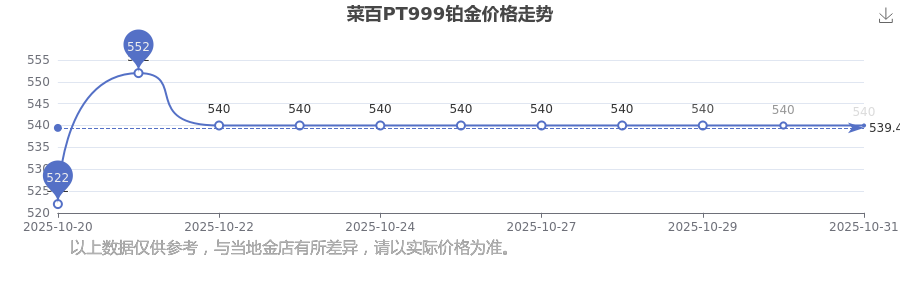 540.0元/克的价格,是菜百今日 PT999铂金的最新行情。