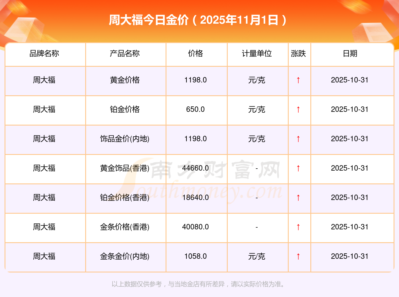 你了解周大福金价今日价格吗?以下是详情数据:黄金价格1198.0元/克,铂金价格650.0元/克,饰品金价(内地)1198.0元/克,黄金饰品(香港)44660.0,铂金价格(香港)18640.0,金条价格(香港)40080.0,金条金价(内地)1058.0元/克,黄金价格1200.0元/克,铂金价格560.0元/克,足金价格1200.0元/克,黄金价格1135.0元/克。