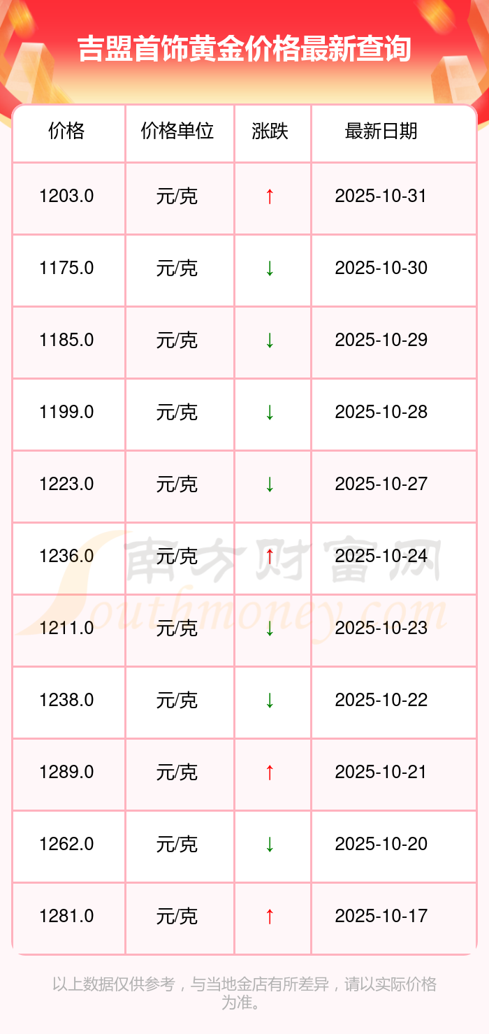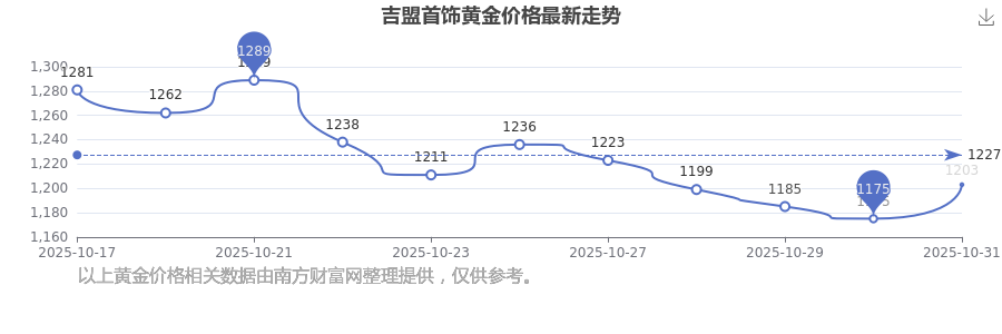 吉盟首饰今日 黄金价格的最新市场行情价为1203.0元/克。
