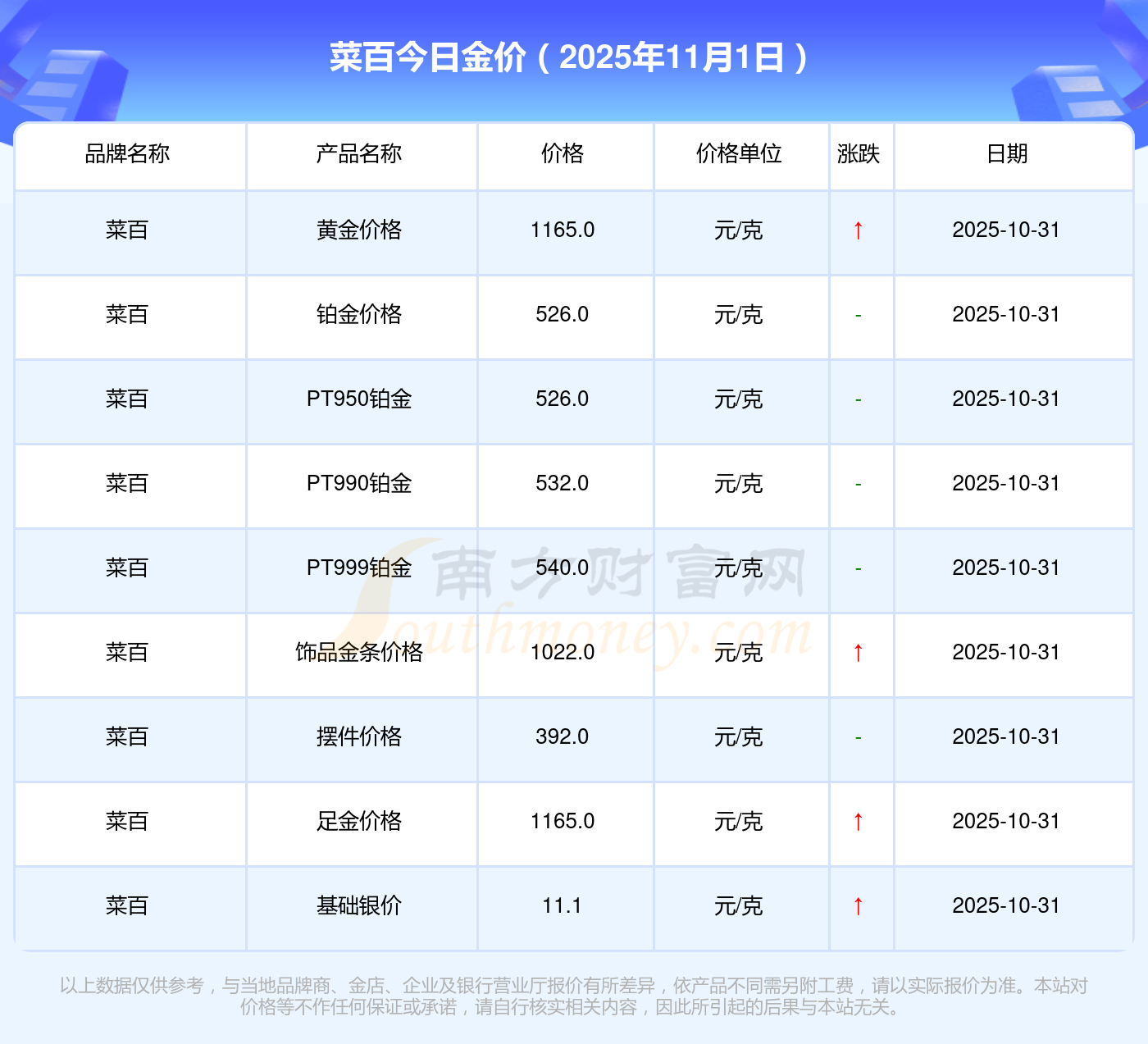 现在菜百黄金价格是多少钱1克_2025年菜百今日金价是多少钱一克,最新菜百查询,2025年11月1日菜百PT990铂金现在每克多少钱?最新菜百PT990铂金报价公布,一起来看看吧!