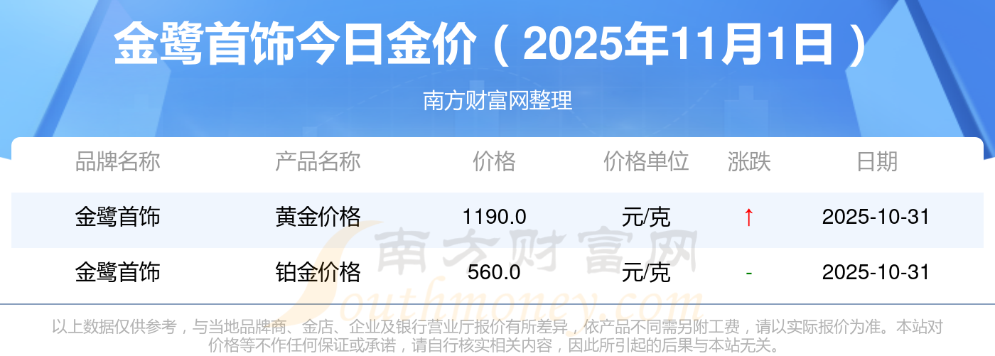 以上数据仅供参考,与当地品牌商、金店、企业及银行营业厅报价有所差异,依产品不同需另附工费,请以实际报价为准。本站对价格等不作任何保证或承诺,请自行核实相关内容,因此所引起的后果与本站无关。