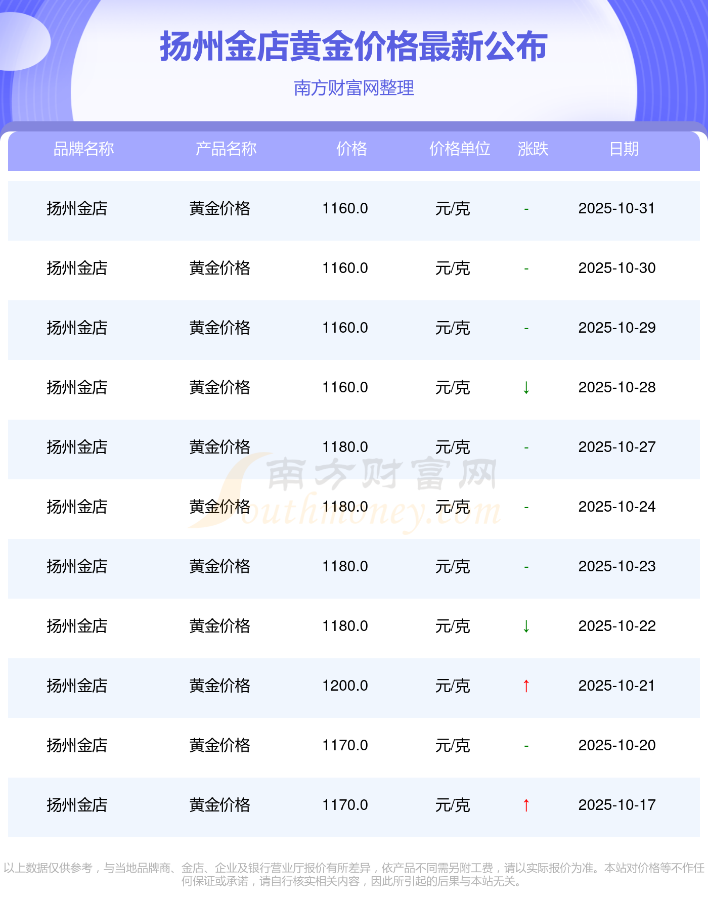 今日黄金售价是多少呢?此刻每克黄金价钱怎样?黄金每一克的价钱一般是多少呀?2025年11月1日扬州金店黄金价格查询:1160.0元/克。