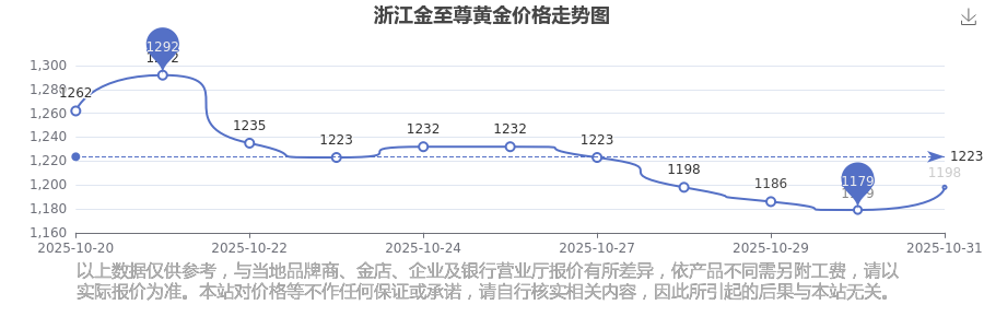 2025年11月1日,浙江金至尊的黄金价格标价达到 1198.0元/克。