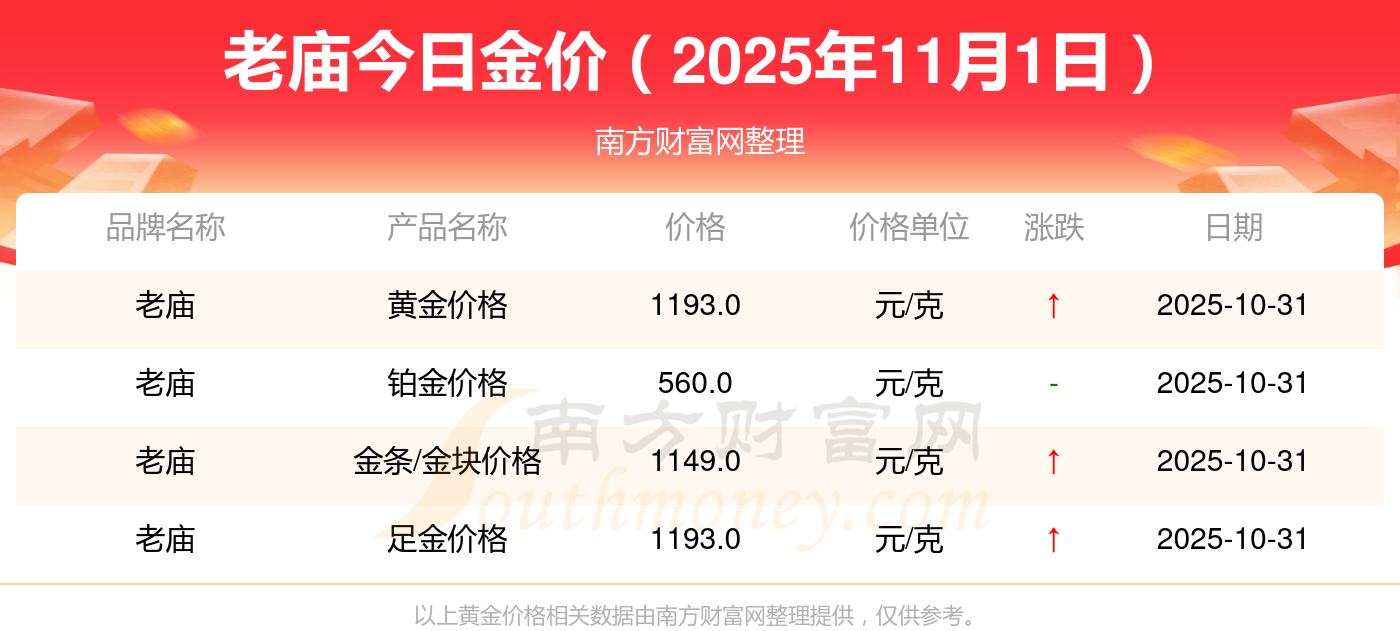 2025年11月1日老庙金条多少钱1克 现在深圳老庙黄金价格查询