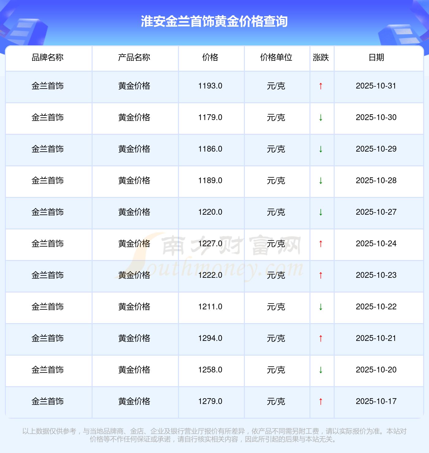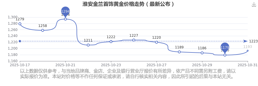 今日淮安金兰首饰黄金价格最新为:1193.0元/克。