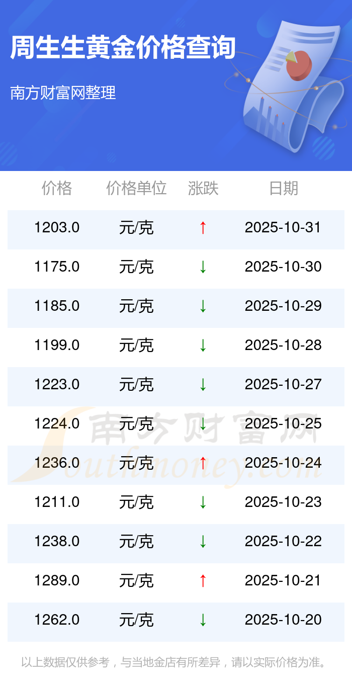 周生生今日黄金价格的最新标价为1203.0元/克。