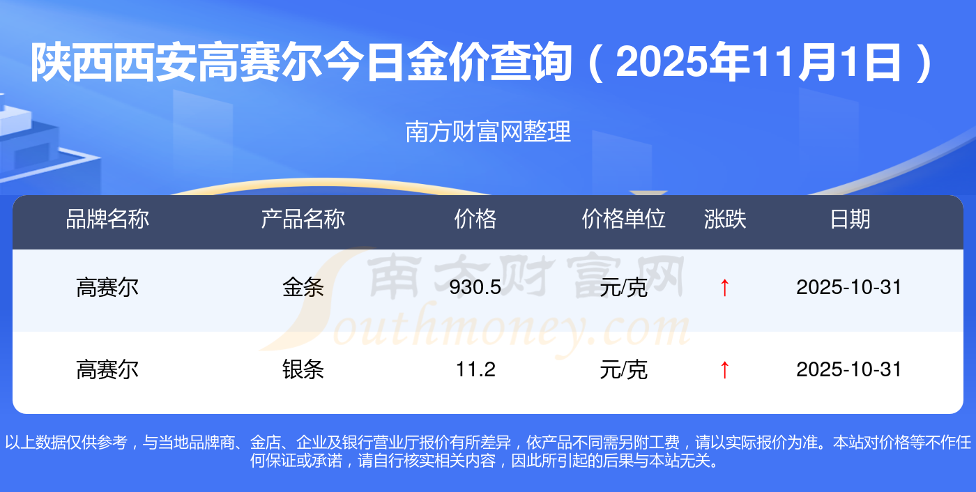 2025年11月1日高赛尔金条多少钱1克 现在陕西西安高赛尔黄金价格查询