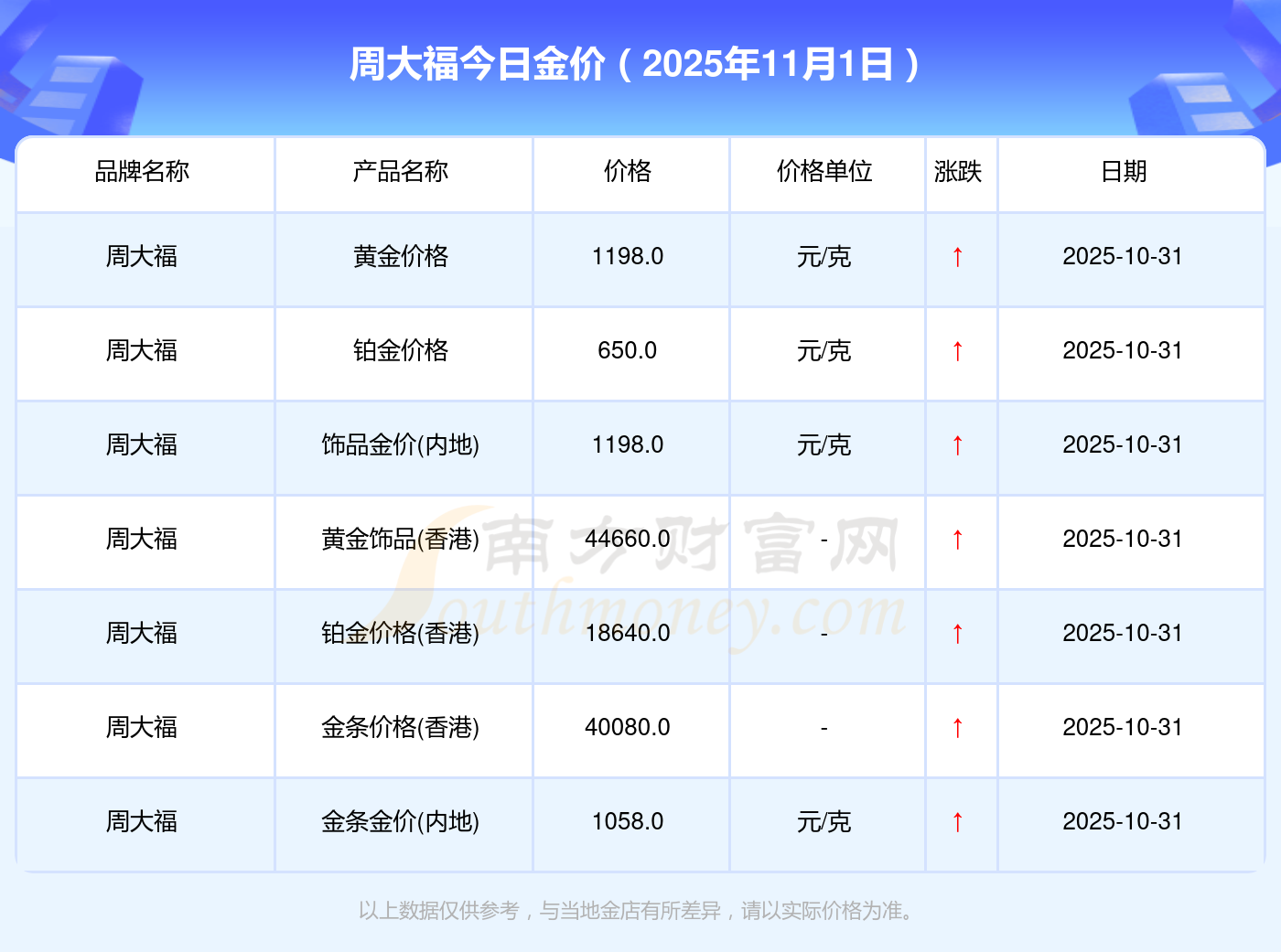 黄金价格1198.0元/克,铂金价格650.0元/克,饰品金价(内地)1198.0元/克,黄金饰品(香港)44660.0,铂金价格(香港)18640.0,金条价格(香港)40080.0,金条金价(内地)1058.0元/克,黄金价格1200.0元/克,铂金价格560.0元/克,足金价格1200.0元/克,黄金价格1135.0元/克。