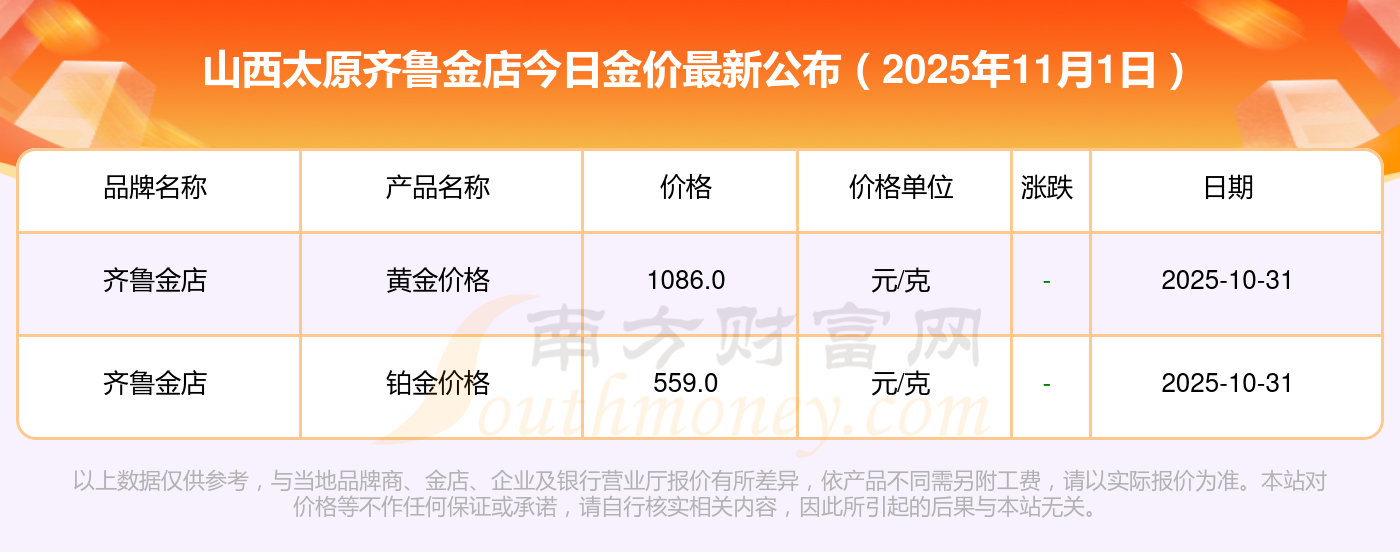 山西太原齐鲁金店目前金价,一克的标价是多少?