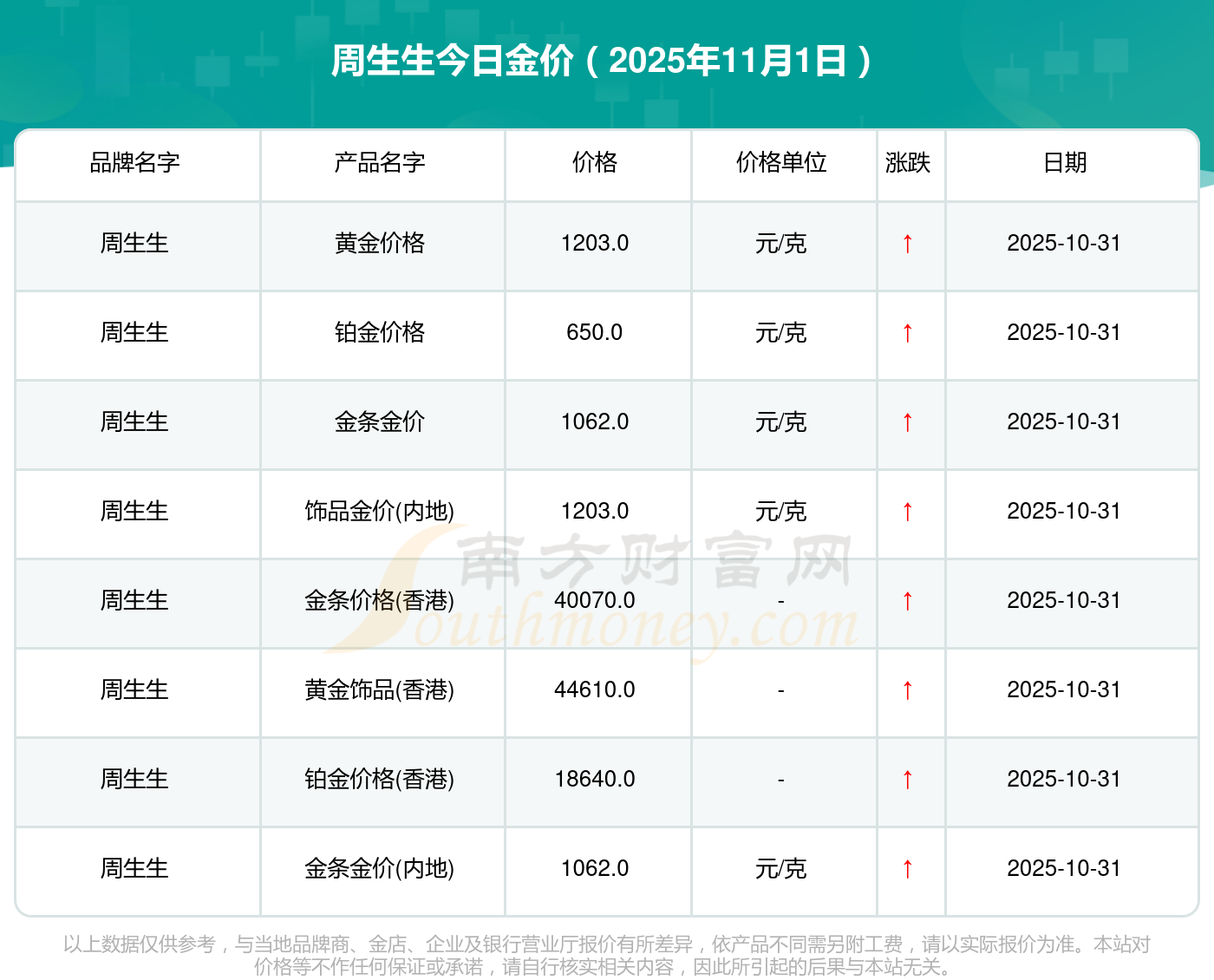周生生黄金在今日的定价为多少?黄金价格1198.0元/克,铂金价格650.0元/克,饰品金价(内地)1198.0元/克,黄金饰品(香港)44660.0,铂金价格(香港)18640.0,金条价格(香港)40080.0,金条金价(内地)1058.0元/克,黄金价格1200.0元/克,铂金价格560.0元/克,足金价格1200.0元/克,黄金价格1135.0元/克。