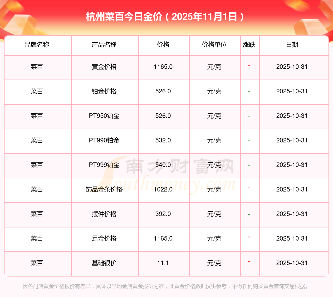 以上数据仅供参考,与当地金店有所差异,请以实际价格为准。