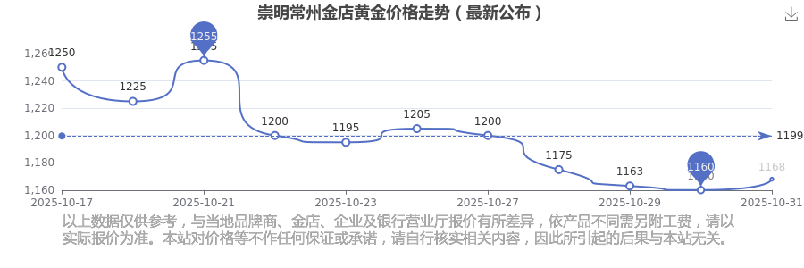 崇明常州金店黄金价格每克多少钱,今天黄金一克的价格具体是多少?今日崇明常州金店黄金价格查询,今日(2025年11月1日),1168.0元/克是崇明常州金店黄金价格的价格标准。