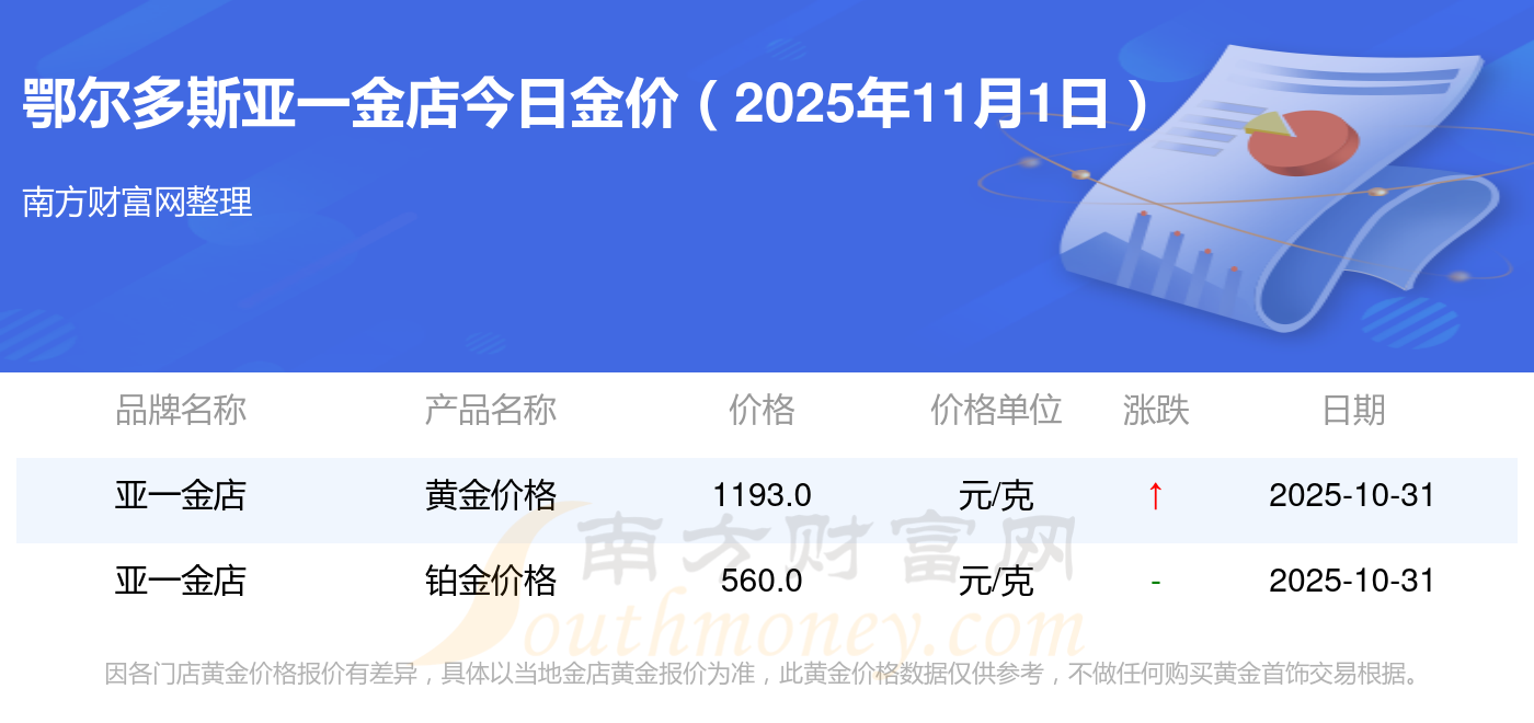 鄂尔多斯亚一金店今日金价查询