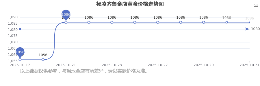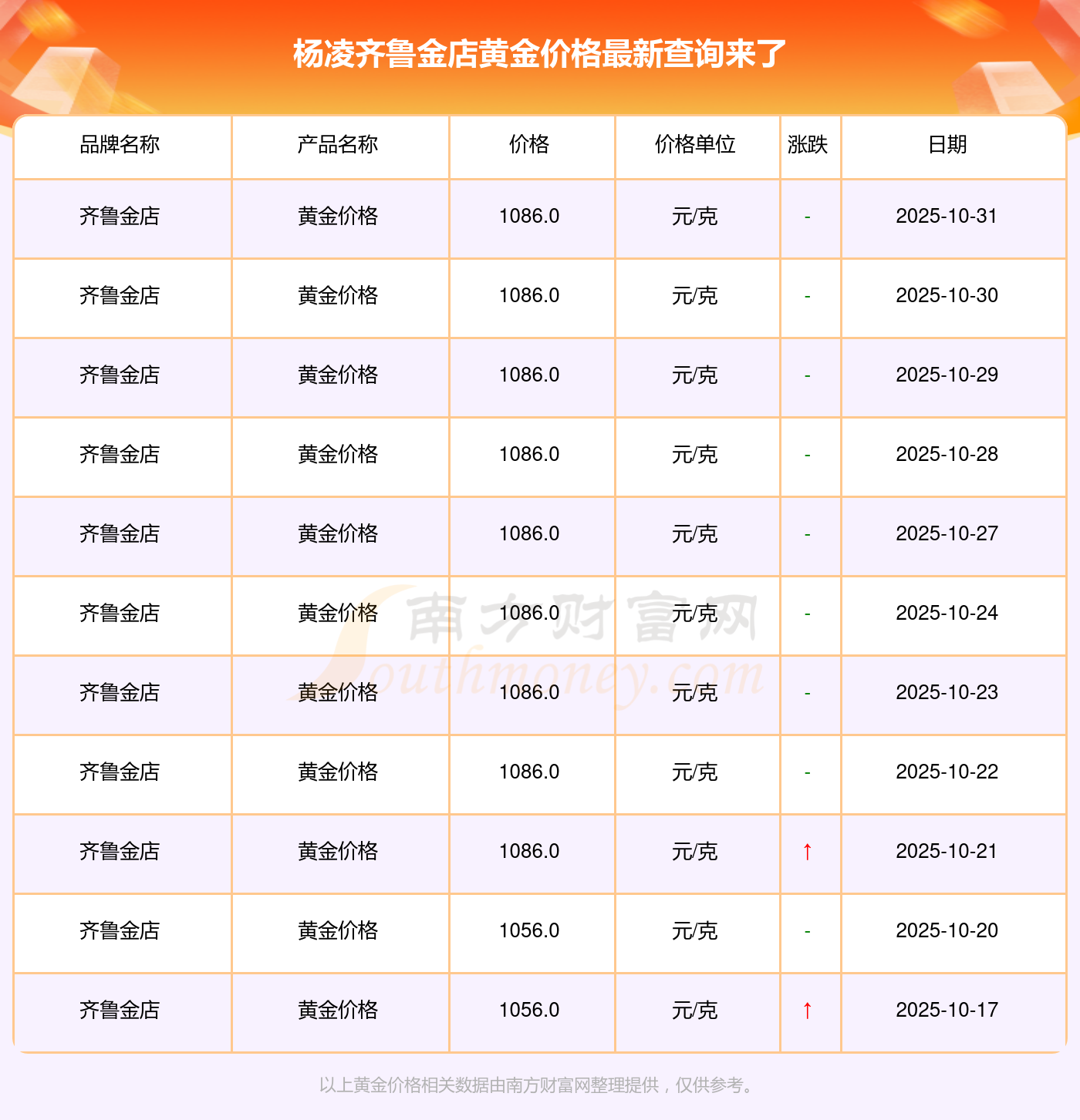 2025年11月1日杨凌齐鲁金店黄金价格:1086.0元/克。