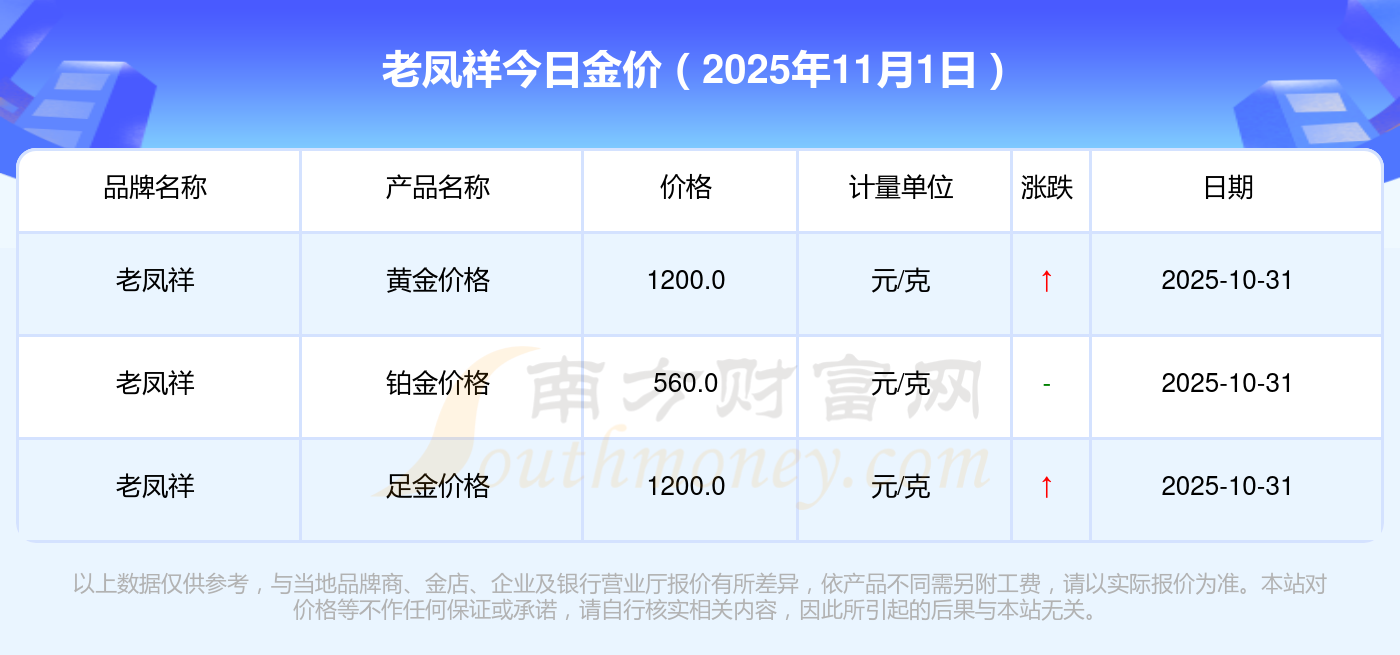 黄金价格1198.0元/克,铂金价格650.0元/克,饰品金价(内地)1198.0元/克,黄金饰品(香港)44660.0,铂金价格(香港)18640.0,金条价格(香港)40080.0,金条金价(内地)1058.0元/克,黄金价格1200.0元/克,铂金价格560.0元/克,足金价格1200.0元/克,黄金价格1135.0元/克。