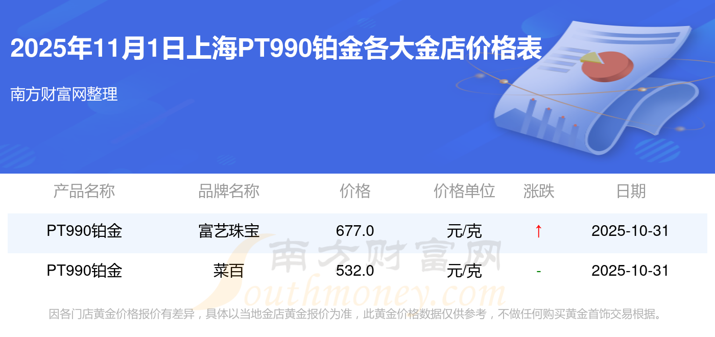 二、2025年11月1日今日上海各金店PT990铂金价格实时行情汇总