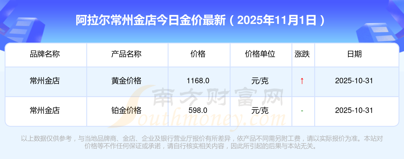2025年11月1日现在阿拉尔常州金店黄金价格多少钱一克?