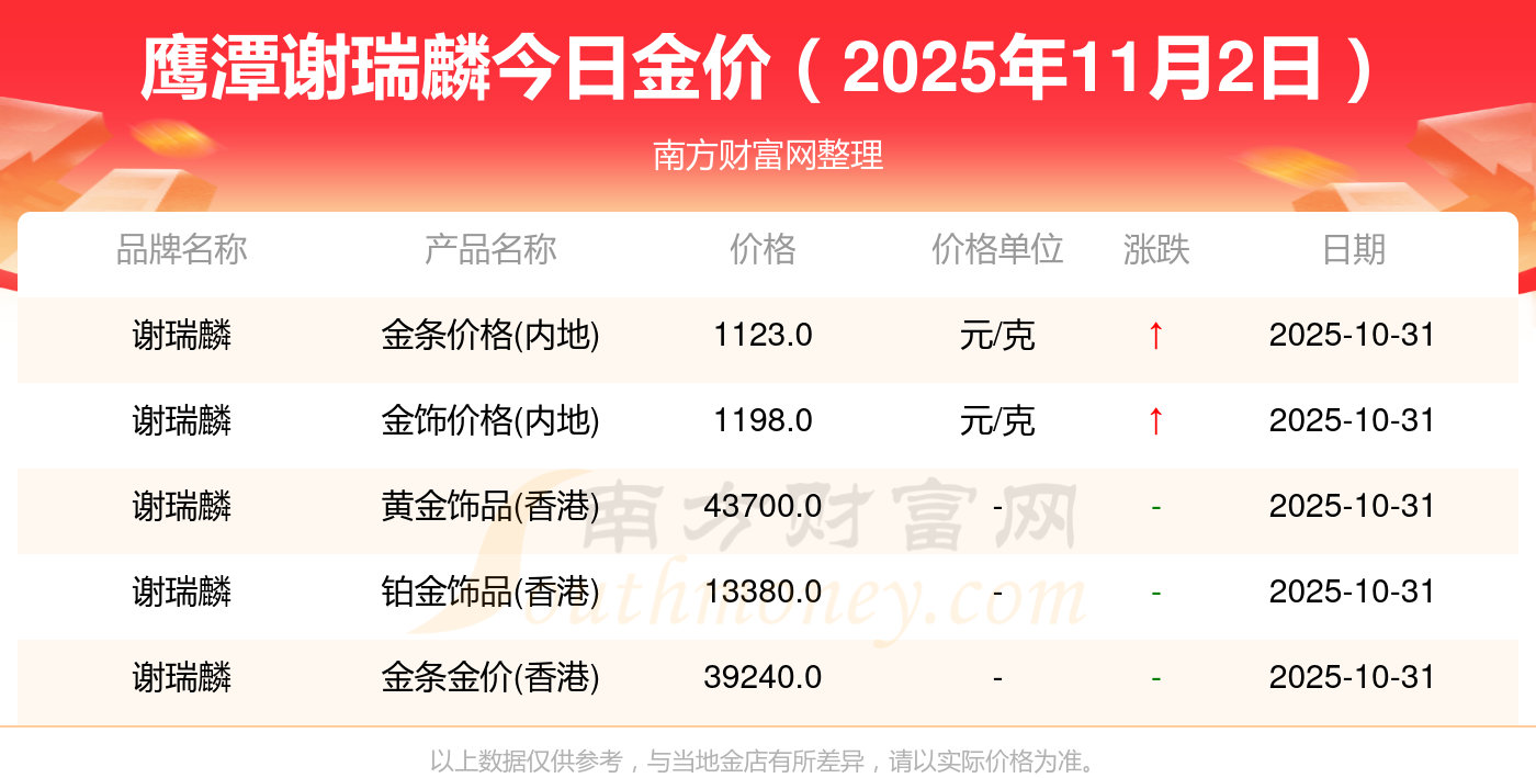 以上数据仅供参考,与当地品牌商、金店、企业及银行营业厅报价有所差异,依产品不同需另附工费,请以实际报价为准。本站对价格等不作任何保证或承诺,请自行核实相关内容,因此所引起的后果与本站无关。