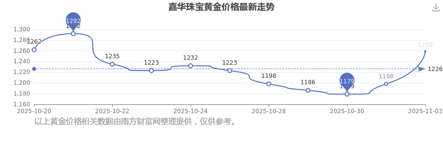 嘉华珠宝 黄金价格今日最新的价位是1259.0元/克。