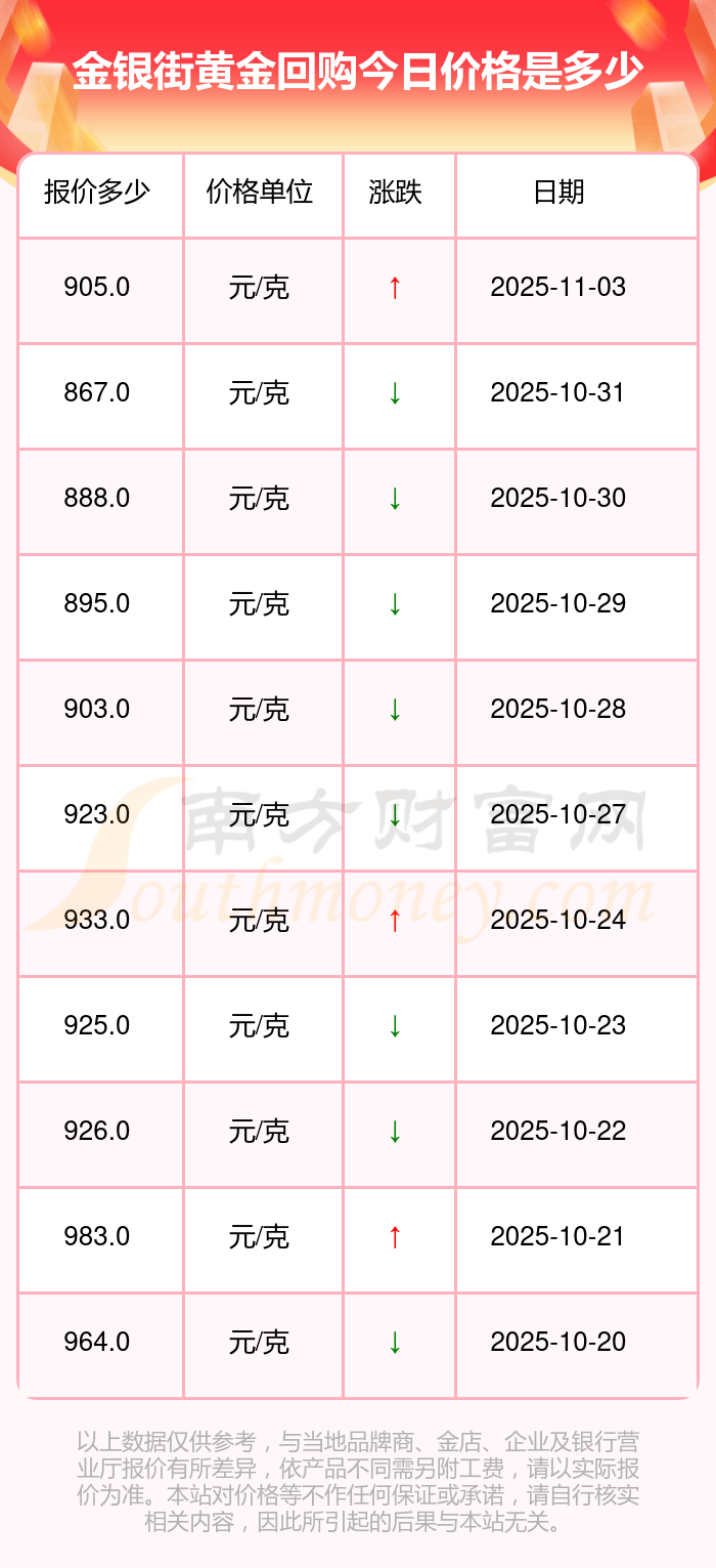 以上数据仅供参考,与当地金店有所差异,请以实际价格为准。