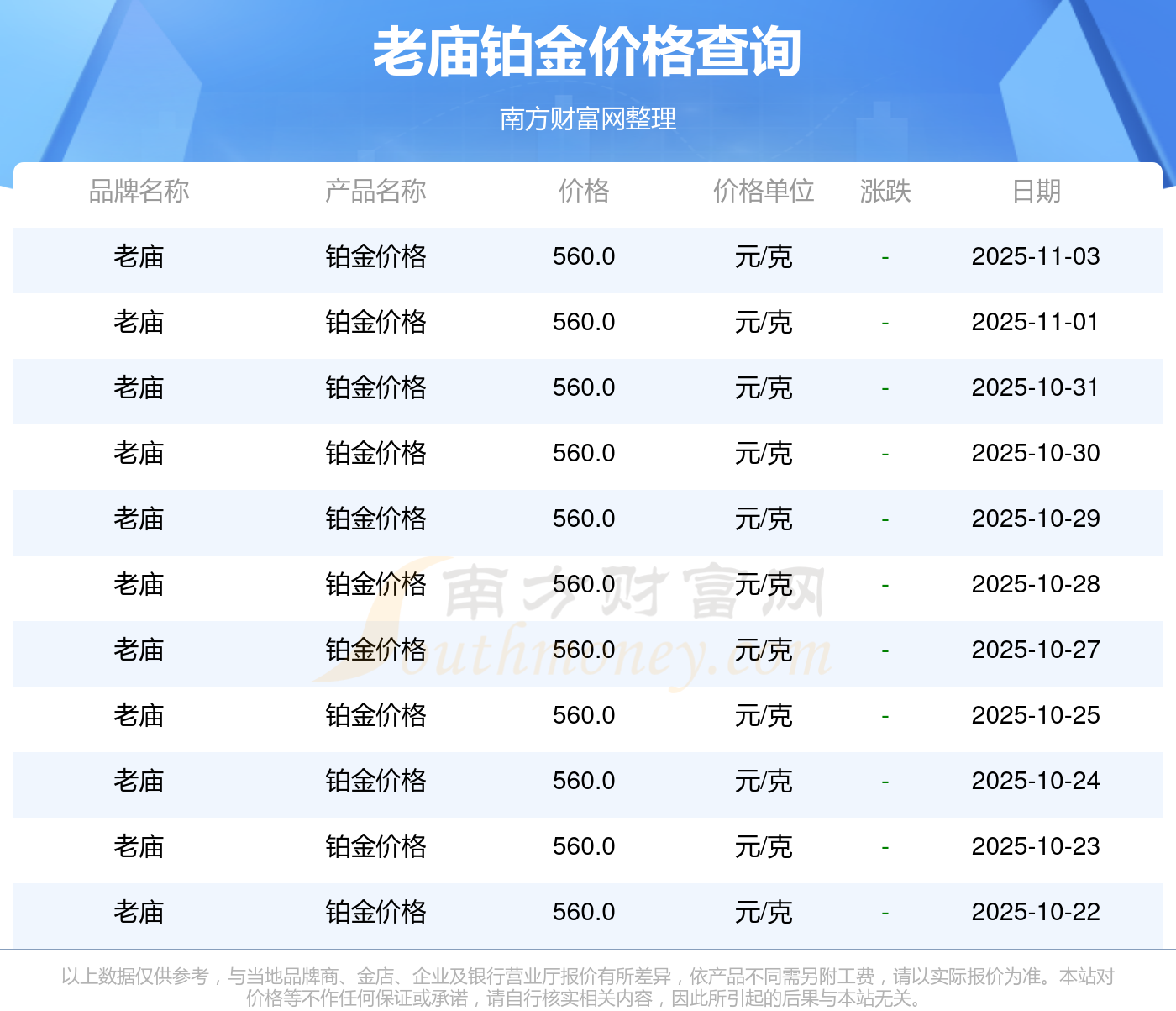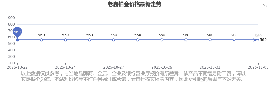 今日(2025年11月4日),老庙铂金价格最新价格为560.0元/克。