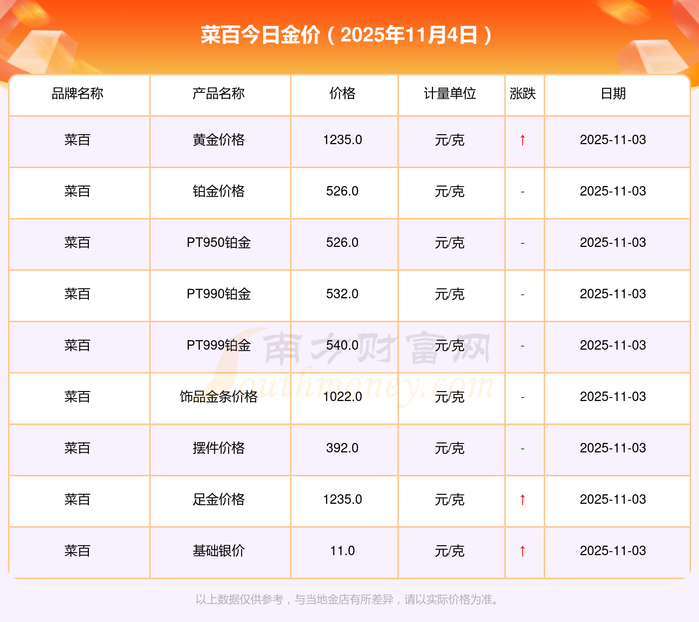 现在菜百黄金价格是多少钱1克_2025年菜百今日金价是多少钱一克,最新菜百查询,2025年11月4日菜百摆件价格现在每克多少钱?最新菜百摆件价格报价公布,一起来看看吧!