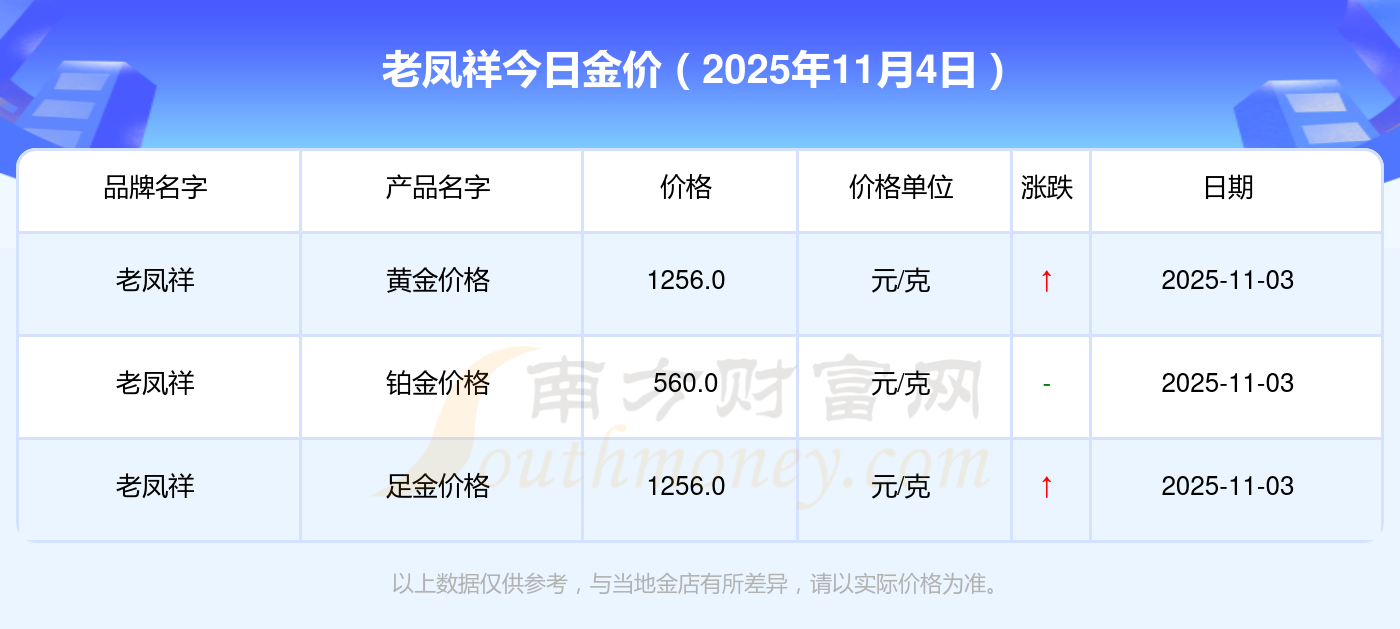 现在老凤祥黄金价格是多少钱1克_2025年老凤祥今日金价是多少钱一克,最新老凤祥查询,2025年11月4日老凤祥铂金价格现在每克多少钱?最新老凤祥铂金价格报价公布,一起来看看吧!