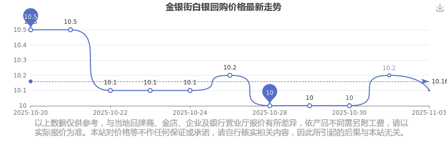 金银街今日白银回购的最新市场行情价为10.1元/克。