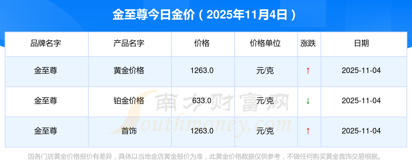 金至尊现在金价多少钱一克?金至尊今天铂金价格多少一克?最新金至尊查询,2025年11月4日金至尊铂金价格现在每克多少钱?最新金至尊铂金价格报价公布,一起来看看吧!