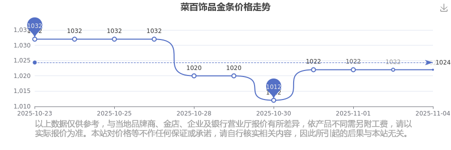1022.0元/克是菜百在今日给出的 饰品金条价格最新价格。