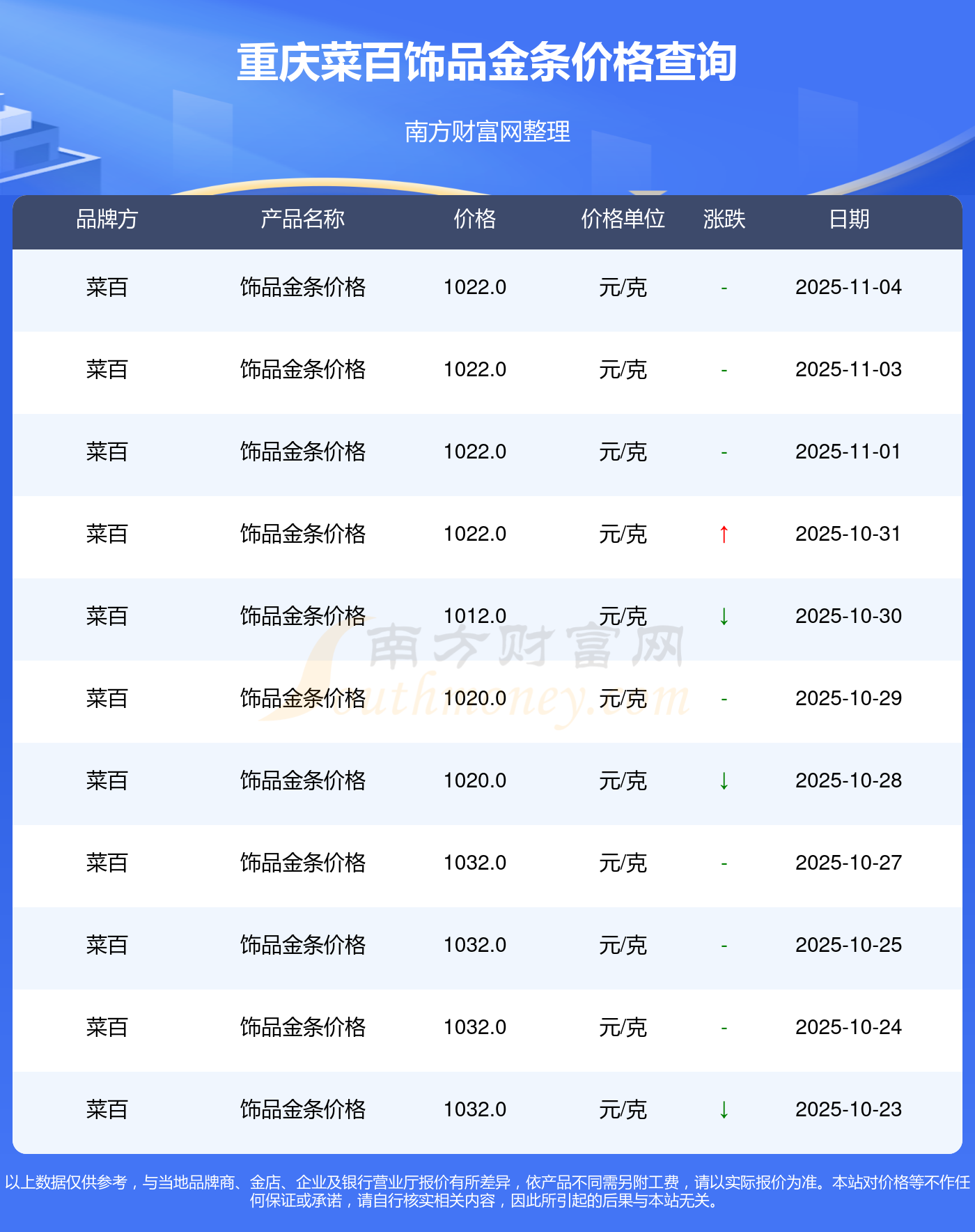以上数据仅供参考,与当地金店有所差异,请以实际价格为准。
