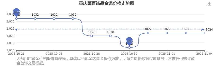 2025年11月4日重庆菜百饰品金条价格是1022.0元/克。