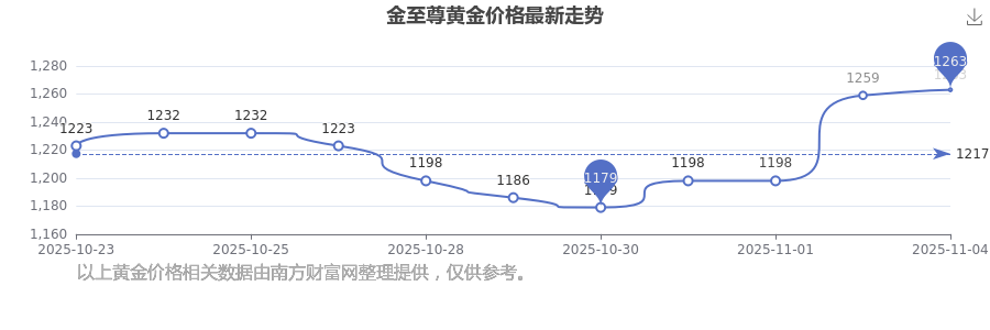 想了解今日黄金价格,现在每克黄金的价格是多少呢?黄金价格一般是多少钱一克?据了解,今日金至尊 黄金价格的最新价格为1263.0元/克。