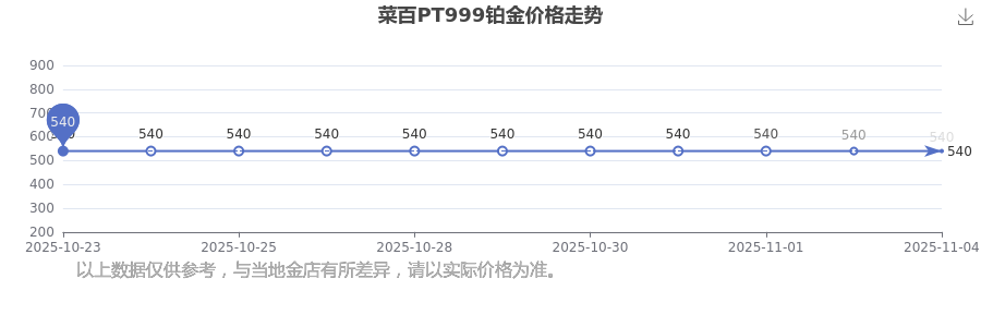 今日(2025年11月4日)菜百PT999铂金价格是540.0元/克。